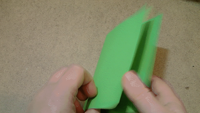 Теперь берём зелёный картон, размер 16 на 14 сантиметров (можно больше) и складываем его пополам.